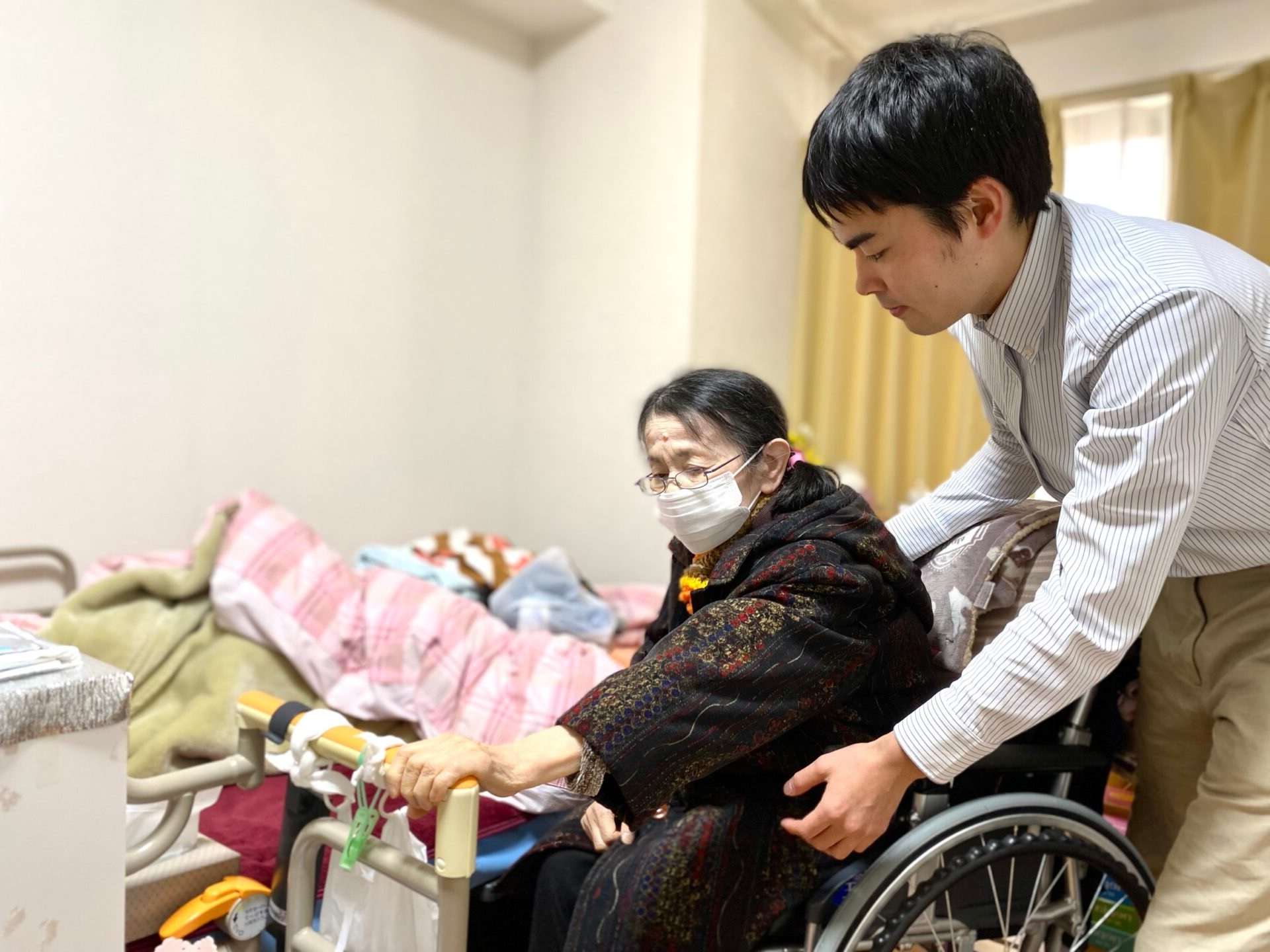ベッド(お部屋)から車いすへの移乗、サービス終了時は車いすからお部屋への移乗まで、すべてスタッフが対応。ご家族の介助負担をゼロにします。